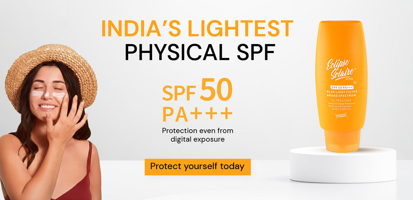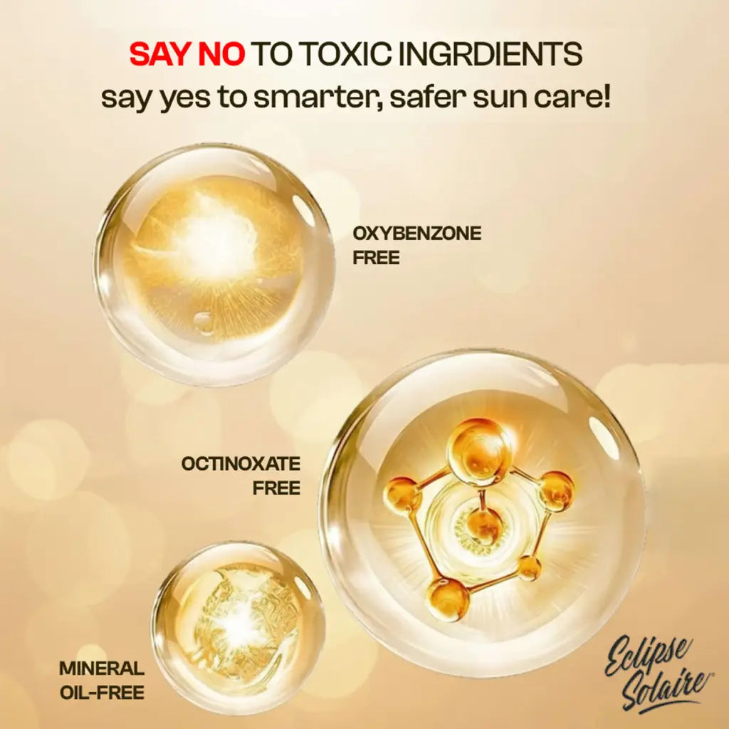 Eclipse Solaire sunscreen utilizes Full Light Technology, combining a high-performance blend of Zinc Oxide (ZnO) and Titanium Dioxide—two of the most effective and skin-safe mineral filters in sun protection. This formulation provides broad-spectrum defense against UVA/UVB rays, blue light, and infrared radiation, ensuring comprehensive skin shielding. The product is designed with a lightweight, matte finish that is sweat-resistant, hypoallergenic and non-comedogenic, making it suitable for all skin types. Crafted for individuals with active lifestyles or those residing in humid environments, Eclipse Solaire offers reliable, all-day protection without compromising comfort.