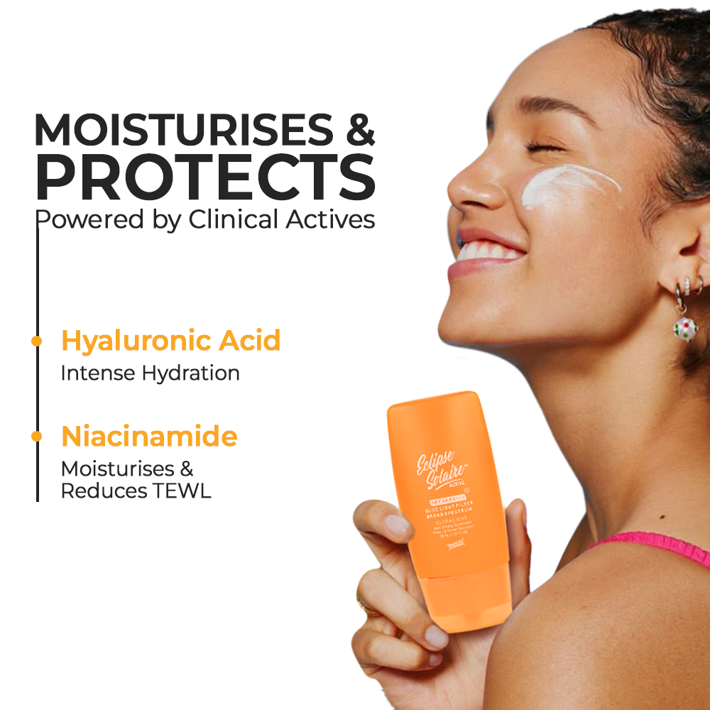 Eclipse Solaire Active Mini : Lightest Physical Pocket-Sized SPF 50 PA+++ with powerful broad-spectrum protection, perfect for tossing in your gym bag, purse, or pocket. Wherever you go, this mini sun safety goes too.